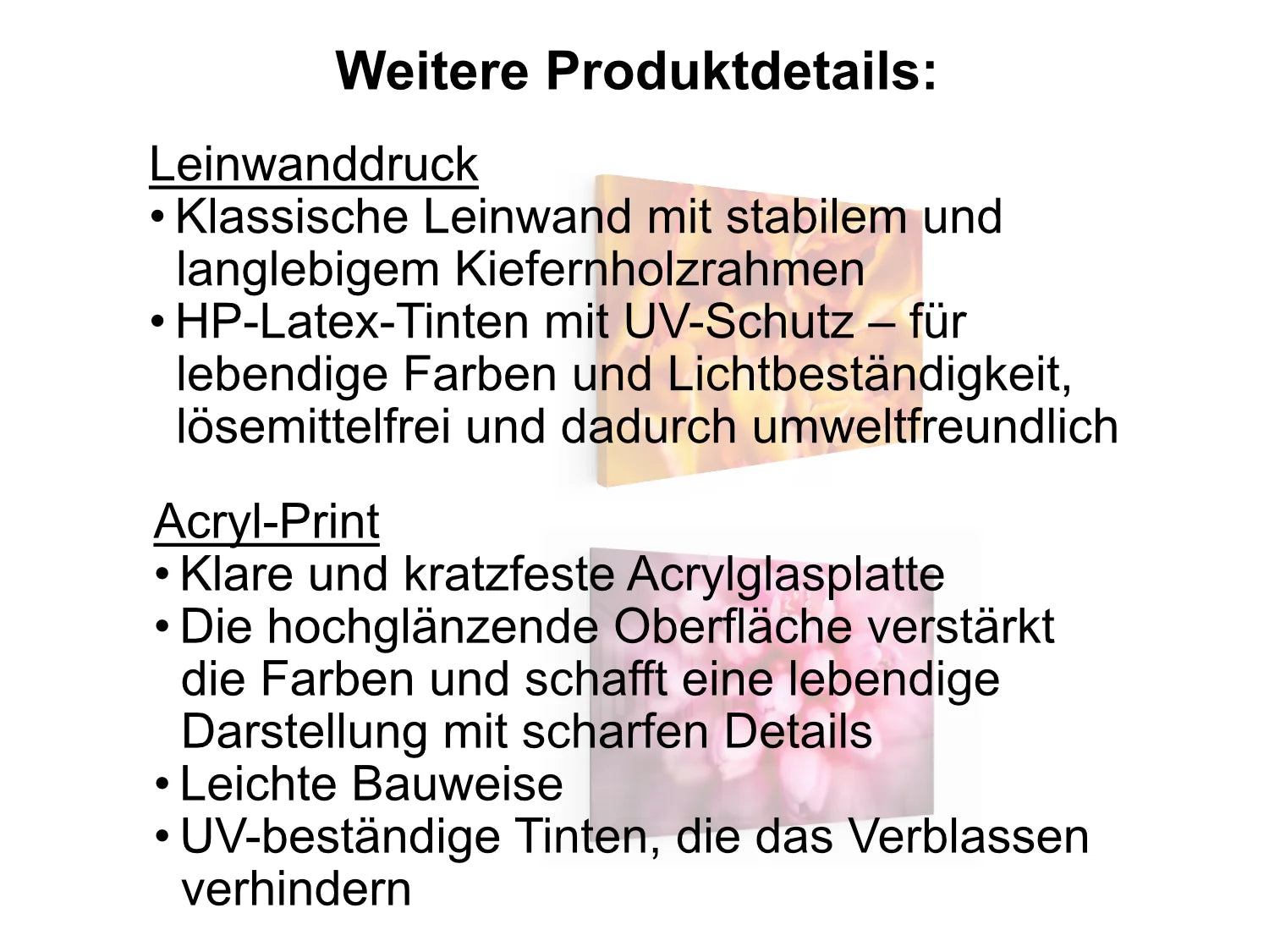 - Großformatiger Druck - gerade so werden die Bilder zum echten Hingucker! Wählen Sie deshalb eine von zwei Größen: L (90x60 cm) oder XL (120x80 cm)